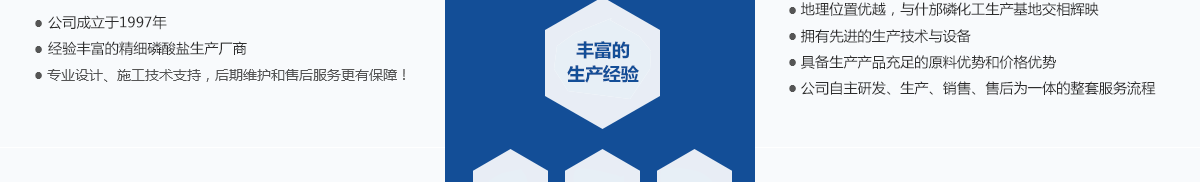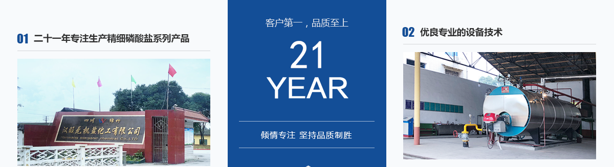 本公司位于四川省綿竹市漢旺鎮,是自1997年成立以來至今,已發(fā)展成為四川生產經驗豐富的精細磷酸鹽系列產品專業(yè)生產廠家,地理位置優(yōu)越,毗鄰四川新市和拱星工業(yè)園區(qū),與什邡磷化工生產基地交相輝映。主要生產產品有:磷酸二氫鉀、酸式磷酸鉀、磷酸氫二鉀、磷酸脲、磷酸二氫鈉、磷酸氫二鈉、磷酸三鈉、磷酸二氫銨、磷酸氫二銨等系列磷酸鹽產品。